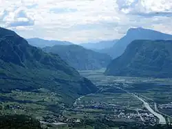 ![]() Salorno in the Adige valley, view from the Haderburg | |