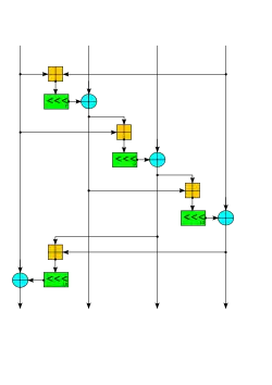 ![]() The ChaCha quarter-round function. Four parallel copies make a round. | |