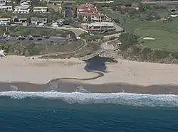 From the 1960s to the 1990s, residential development filled most of the available land within the Salt Creek watershed.[14] Mountaintops were flattened and dumped into small canyons to create level land for tract housing and roads. Despite that, the Salt Creek Canyon remained relatively undeveloped, except for a golf course - the Monarch Beach Golf Links - at its southern end, and a golf course surrounding the Arroyo Salada Storm Channel's mainstem. As recently as the 1970s, the lowermost stretch of the Salt Creek Canyon was still in existence.[15] This part of the canyon was also destroyed by landfill for the purpose of building more houses and the Pacific Coast Highway.[16]