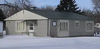As World War II soldiers returned home following the war, the United States faced a nationwide housing shortage for the veterans and their families. Housing companies such as Lustron formed to mass-produce modular, affordable homes that could be quickly constructed. The Lustron Corporation, although short-lived (operating only from 1946 to 1950), built about 2,500 homes across the United States, including several in South Dakota. The Sample—Lindblaum House was built in 1948 by Glen and May Sample. Wakonda is a rural community, and this home was built on the outskirts of town; it is situated down a private driveway and is surrounded by alfalfa fields. In 1965, the house was sold to Erick Lindblaum; and in 1983, Odile Babb bought it. The house was listed on the National Register of Historic Places on December 2, 1998, as a well-preserved example of a surviving Lustron house in South Dakota.[2]
