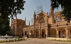 In 1857, the college began postgraduate teaching. An examination system was adopted in 1880. In 1894, the famous Saraswati Bhavan Granthalaya building was built, where thousands of manuscripts remain preserved today. These manuscripts have been edited by the principal of the college and published in book form. More than 400 books have been published in a series known as Sarasvati Bhavana Granthamala.