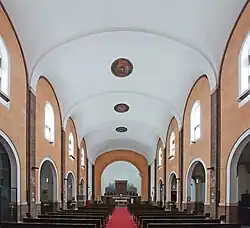 San Benedetto fuori Porta San Paolo was built in 1916–1925.[6] Don Giovanni Gregorucci helped Jews to hide in the church during The Holocaust.[7] The building was damaged during the 1944 Liberation of Rome.[8][9] Ferruccio Ferrazzi painted five tondi and an altarpiece for San Benedetto in 1949.[10]