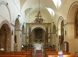 The church we see today dates to 1570, and the interior stucco decorations date to the 17th-century. The altar stucco depicts St Francis of Paola in prayer (1687). The church also has a putative link to the Blessed Sante da Urbino (died 1394), known al secolo as Giansante Brancorsini, who was born in the parish. The crypt, dating to the 12th-century, houses the putative relics of the fourth-century Saint Marcellina; these were moved here in 1666, although she appears to no have had links to the town in life. The 15th century belltower rises to the left of the apse. [1]