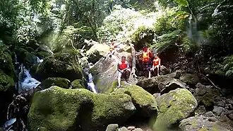 On April 9, 2017, five explorers from Camarines Norte was given a permit by Nelson P. Delos Santos (Municipal Mayor) and Mr. Manuel Racho (Municipal Tourism Officer) to explore the Nacali Falls river and mampurog river as part of their dream to create a comprehensive list of waterfalls and different natural attractions in the province. One member of the team, Mr. Benjie S. Ilagan is a resident of Barangay Mampurog and has visited Nacali Falls for more than five times. The other members of the team are as follows: Mr. Kim as the team leader and navigator; Mr. Chris A. Camus the scribe; Mr. Gilbert Parale the timer and Mr. Jossiah Nathaniel M. Parena, aspiring to become a mountaineer and the youngest member of the group.[24] A preliminary exploration was conducted prior to the actual exploration for the preparation and planning of the team. The team was surprised to see several meters of canyons and deep part of river that is suitable for canyoning Activities. The waterfalls can also be used for rappelling activities. The team also saw different waterfalls created by the big boulders present in the river.[25] After six hours of river trekking and canyoning from the Nacali Falls river junction, the team found out that due to the limited time of the exploration, Mampurog river was not reached. Thus, the team recommends to the municipal Mayor and the tourism officer to allow them to explore the place in the future.[26]