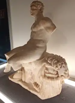 Tivoli was identified with the cult of Hercules by virtue of its strategic position and it venerated him as a warrior god (Hercules Victor or Invictus) for a victory over the Aequi,[9] as Hercules Saxanus (as protector of travertine mining), and as protector of trade and of flocks, a fundamental activity for the original city economy.[10]