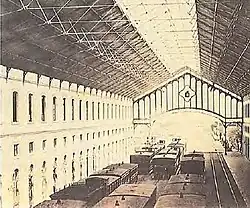 The project was designed by Angel Arribas Ugarte, and directed by director João Evangelista de Abreu, and his chief engineer Lecrenier, and constructed by the company Oppermann.[6][7][3] The station was inaugurated on 1 May 1865, with the first line to the station beginning operation in 1873, to connect Santa Apolónia to Santos.[6][8]