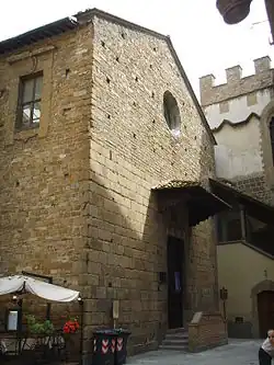 Santa Maria Sopra Porta is a small, former Roman Catholic church, built in rustic stone Romanesque style, located on Via Pellicceria, Florence, region of Tuscany, Italy. It now houses the library of the Palazzo di Parte Guelfa.