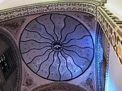 The cupola dome interior's mural, above the stained-glass windows, was painted by Juan Cordero with an image of "God, the Father" surrounded by images representing virtues.[3]