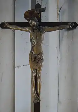 In 1831, the wooden compass of the side entrance was built by carpenter Giovanni Gozzoli, decorated with carvings and floral motifs. The artifact was then enriched with a yellow monochrome lunette by Giuseppe Teosa, depicting Jesus driving the merchants out of the temple.[62]