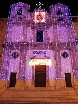On the façade, realized on a design made by Emanuele Cardona,[3] there are two bell towers,[2] with four bells weighing 20 quintals on the whole,[2] one of them was used for the running of the clock which does not exist any longer.[2]