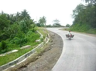 The Sarangani–Sultan Kudarat Coastal Road or Awang–Upi–Lebak–Kalamansig–Palimbang–Sarangani Road is a 323-kilometre (201 mi), two-to-four lane national secondary road, connecting the provinces of Maguindanao del Norte, Maguindanao del Sur, Sultan Kudarat,[1] Sarangani,[2] and South Cotabato.[3] It starts from Datu Odin Sinsuat in Maguindanao del Norte and ends at General Santos in South Cotabato.