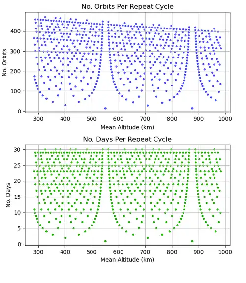 These two effects must cancel out after a set orbital revolutions and (sidereal) days. Hence, equating the elapsed time to the orbital period of the satellite and combining the above two equations yields an equation which holds for any orbit that is a repeat orbit: