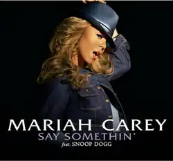 "Say Somethin'" is a song by American singer-songwriter Mariah Carey. It was written by Carey, Snoop Dogg, Chad Hugo, and Pharrell Williams, and produced by The Neptunes as the sixth and final single from Carey's tenth studio album, The Emancipation of Mimi (2005). The song is one of few from Carey's catalog in which she does not share production credits. "Say Somethin'" features Dogg as a guest artist, and is influenced by R&B and hip-hop music genres. Lyrically, the song is a dialogue between a male and a female discussing sexual themes and acts of which they plan to engage in a restroom.