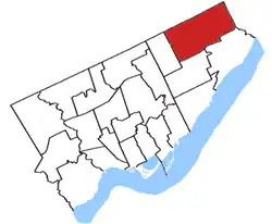 Following the 2012 federal electoral boundaries redistribution, the riding was split between Scarborough North and Scarborough—Rouge Park.