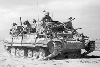 The 7th Armoured Division (with a Free French Brigade under command) from XIII Corps (Lieutenant-General Brian Horrocks) made a secondary attack to the south. The main attack aimed to achieve a breakthrough, engage and pin down the 21st Panzer Division and the "Ariete" Division around Jebel Kalakh, while the Free French on the far left were to secure Qaret el Himeimat and the el Taqa plateau.[22] The right flank of the attack was to be protected by 44th Infantry Division with the 131st Infantry Brigade. The attack met determined resistance, mainly from the 185th Infantry Division "Folgore", part of the Ramcke Parachute Brigade and Gruppe Keil.[44][45]