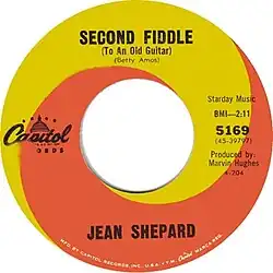 "Second Fiddle (To an Old Guitar)" is a song written by Betty Amos that was originally recorded by American country singer Jean Shepard. It was released as a single by Capitol Records in 1964, reaching the top five of the US Country chart. The song featured Shepard yodeling and was her first top ten single in ten years. The song would later be nominated by the Grammy Awards.