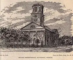 Fifteen men began planning for Second Presbyterian Church in 1809. The Reverend Andrew Flinn organized the congregation to accommodate the growing congregation at First (Scots) Presbyterian Church on lower Meeting Street. The new church was built at 342 Meeting St., Charleston, South Carolina at the then substantial cost of $100,000, and on April 3, 1811, it was dedicated as "The Second Presbyterian Church of Charleston and Its Suburbs." The land had been obtained from the Wragg family.[1] An act of the state legislature authorized the holding of a public lottery to raise funds for the building.[2]