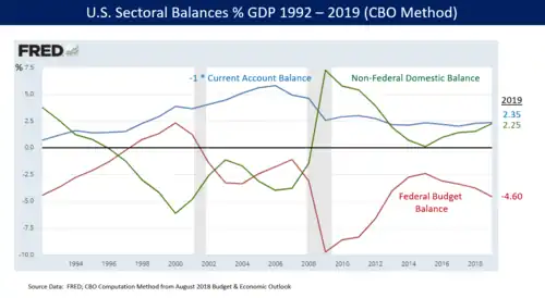 - ^ FRED-Sectoral Balances-Three Line Annual Version-CBO Approach-Retrieved April 9, 2019
