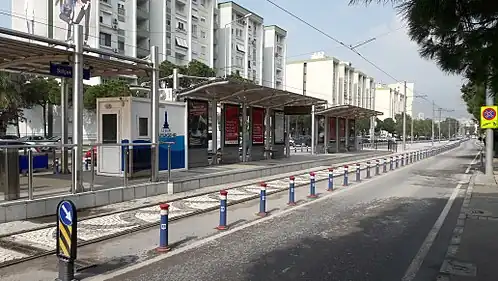 Selçuk Yaşar is a light-rail station on the Karşıyaka Tram line of the Tram İzmir network.[1] The station consists of an island platform serving two tracks. Selçuk Yaşar is located on Selçuk Yaşar Street in Atakent, Karşıyaka. The station was opened on 11 April 2017, along with the entire tram line.[2]