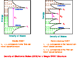 SWNTs have unique optical and spectroscopic properties largely due to one-dimensional confinement of electronic and phonon states, resulting in so-called van Hove singularities in the nanotube density of states (DOS).