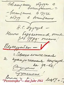 Sergei Pavlov's archive. Note about the idea of Perestroika in 1961 on the outline of Nikita Khrushchev's report