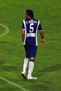 Sánchez agreed to join Sevilla FC in July 2009 in a four-year deal worth 4 million, with an additional one million being added if the Andalusians attained certain goals.[4] On 1 January 2010, it was announced that he would be unable to play football again until 'rigorous tests' were carried out on his heart, after he complained of pains.[5][6] His season outputs consisted of seven league games – helping Sevilla to the fourth place – and two in the Copa del Rey which the club won, both legs of the clash against CF Atlético Ciudad (9–3 on aggregate).[7][8]