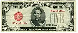 Series of 1928 United States Notes were issued in $2 (through 1928G) and $5 (through 1928F) denominations until the early 1950s.[4] Also, for a brief period in 1933, Series of 1928 $1 United States Notes were issued as a response to the Great Depression. Most of these remained in storage before being released in Puerto Rico during 1948-9.[5]