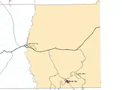 The Seuvarits band of Utes traditionally inhabited the area of present-day Grand County in eastern Utah, east and west of the La Sal Mountains and along the Colorado River and the Green River. The Elk Mountain Mission was established in this area.[4] The territories of the Seuvarits people also included the area of the Book Cliffs in western Colorado and eastern Utah, but the Seuvarits people tended to avoid these lands because of the lack of resources and the ruggedness of the terrain.[7] Historically, the geography of their territories did not require the Seuvarits people to use horses, and they were described as unmounted, per reports as late as the 1850s, the time of the Elk Mountain Mission.[12] After contact with white settlers from the time of the Elk Mountain Mission and beyond, the Seuvarits began to breed and make use of horses in their lifestyle.[12]