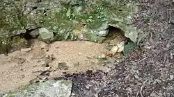 Two plaques at the site read "Hic tuus o Tamesine Pater septemgeminus fons" (Latin for "Here, O Father Thames, is your sevenfold spring").[4] Seven Springs is further from the mouth of the Thames than the medieval preferred source at Thames Head near Kemble.