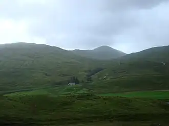 Sgiath Chùil and the Lubchurrin cottage from the north in Glen Lochay | |
