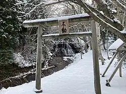 A torii at Fudo Falls, a holy spot for Shōroku Shintō Yamatoyama