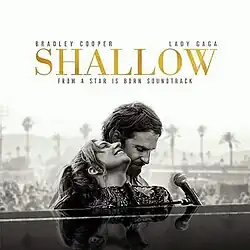 "Shallow" is a song performed by American singer Lady Gaga and American actor and filmmaker Bradley Cooper. It was released through Interscope Records on September 27, 2018, as the lead single from the soundtrack to the 2018 musical romantic drama film A Star Is Born. "Shallow" was written by Gaga with Mark Ronson, Anthony Rossomando and Andrew Wyatt, and produced by Gaga with Benjamin Rice. The song is heard three times in the film, most prominently during a sequence when Cooper's character Jackson Maine invites Gaga's character Ally to perform it onstage with him. The scene was filmed in front of a live audience at the Greek Theater in Los Angeles.