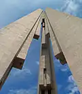 The structure stands 24 metres (79 ft) tall, and is built in the stylised shape of three rifles leaning against each other to show respect to those who fought for their homeland.