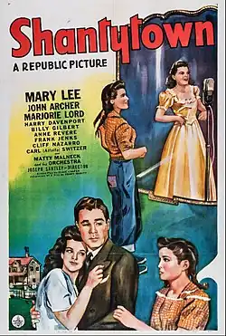 Shantytown is a 1943 American crime film directed by Joseph Santley and written by Olive Cooper. The film stars Mary Lee, John Archer, Marjorie Lord, Harry Davenport, Billy Gilbert and Anne Revere. The film was released on April 20, 1943, by Republic Pictures.[1][2][3]