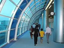 Sharjah International Airport (Arabic: مطار الشارقة, romanized: Maṭār aš-Šāriqa) (IATA: SHJ, ICAO: OMSJ) is an international airport located 7 nautical miles (13 km; 8.1 mi)[1] east-southeast of Sharjah, United Arab Emirates. It is spread over an area of 15,200,000 m2 (3,800 acres).[3] It is the 3rd busiest airport in the country as well as the 10th busiest airport in the Middle East. It has one runway, and is the only airport in Sharjah capable of international flights as of 2022. By 2027, it is expected to increase its capacity to 25 million passengers annually.[4]