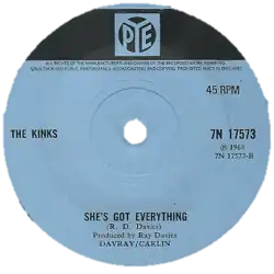 "She's Got Everything" is a song written by Ray Davies and released by the English rock band the Kinks. It first appeared as the B-side of the Kinks' 1968 single, "Days".
