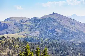 Sheep Mountain is located 39 miles (63 km) south of Bozeman in the Gallatin Range, which is a subrange of the Rocky Mountains.[1] It is set on the common boundary shared by Yellowstone National Park and the Gallatin National Forest. The mountain is also within the Gallatin Petrified Forest which is one of the largest petrified forests of the Eocene Epoch. Precipitation runoff from the mountain's north slope drains to the Yellowstone River via Tom Miner Creek, whereas the south slope drains to Specimen Creek which is a tributary of the nearby Gallatin River. Topographic relief is significant as the summit rises approximately 1,800 feet (549 meters) above headwaters of North Fork Specimen Creek in one mile (1.6 km). The approach to the remote summit is made from the Sky Rim Trail and Gallatin Skyline Trail.[4] There is a microwave reflector stationed at the summit. The mountain's toponym has been officially adopted by the United States Board on Geographic Names.[3] This peak should not be confused with the other Sheep Mountain also in Park County, Montana, but in the Absaroka Range.