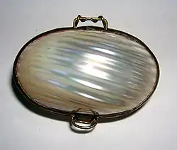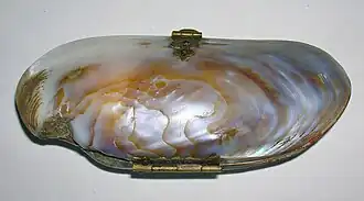 Some hinged containers made out of shells were sold as sewing kits, but they are very similar in appearance to shell purses. Snuff boxes were also sometimes made from bivalve shells.