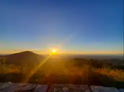 The park is located along the western part of the Blue Ridge anticlinorium, a regional-scale Paleozoic structure at the eastern margin of the Appalachian fold and thrust belt. Rocks within the park were folded, faulted, distorted, and metamorphosed during the late Paleozoic Alleghanian orogeny (325 to 260 million years ago).[8] The rugged topography of Blue Ridge Mountains is a result of differential erosion during the Cenozoic, although some post-Paleozoic tectonic activity occurred in the region.[9][10]