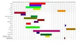 The table below gives descriptions of the various ship and boat builders known to have existed in Whitby, though the list is not exhaustive. The image shows the relative timelines of each company, though it should be remembered that shipbuilding largely ended in 1902, but that Smales still existed as a company until the 1940s as a repair yard. Similarly, Parkol Marine started up in 1980, but did not start building boats until the late 1990s. Some yards possibly also diversified into ship breaking, with one breakers known as Clarkson's operating between 1919 and 1921, though it is unknown if this is the same family who went on to make cobles between the 1930s and the 1970s.[68]