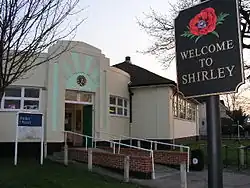 The name Shirley, first recorded in 1314, is thought to mean "shire clearing", referring to its position adjacent to the traditional Kent-Surrey border, though it may instead mean "bright clearing".[2] It was long a small hamlet, with a large mansion (Shirley House) being built here in 1721; this was purchased by the businessman and member of parliament, John Maberley, in the mid-1800s.[2] Around this period the population was growing, with more housing being built.[2] St John's Church was built in 1856 to serve the needs of the growing community, replacing a smaller chapel dating from 1835.[2]