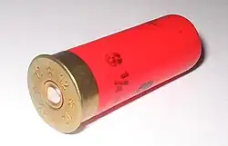 Some cartridges contain a single solid projectile known as a slug (sometimes fired through a rifled slug barrel). The casing usually consists of a paper or plastic tube with a metallic base containing the primer. The shot charge is typically contained by wadding inside the case.[1] The caliber of the cartridge is known as its gauge.