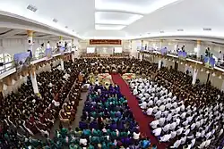 According to 2016 statistics published by the State Sangha Maha Nayaka Committee, 50,692 monks belonged to this monastic order, representing 9.47% of all monks in the country, making it the second largest order after Sudhammā.[3] With respect to geographic representation, the plurality of Shwegyin monks live in Yangon Region (23.66%), followed by Sagaing Region (17.47%), Bago Region (16.58%), and Mandalay Region (13.98%).[3] In 2016, the order had 3,608 monasteries, representing 6% of the country's monasteries.[4]
