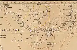 ![]() A map showing the movement of Vietnamese troops (from June to December 1845) during the Siamese-Vietnam War (1841–1845). | |||||||
