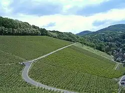 The largest vineyards by far are on the slopes of the Drachenfels, with one vineyard located in Königswinter (to the south) and one in Rhöndorf (to the north). They are characterized by trachytic and stony clay soil. A small vineyard on the right bank of the Rhine has a gravel and sand loam soil.