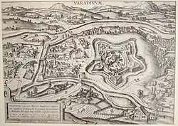 In May 1660, the Ottomans, led by Ahmed Pasha and Ali Pasha of Temesvár, defeated Rákóczi near Szászfenes, and two weeks later, Rákóczi succumbed to his wounds. Nagyvárad remained unprotected. The fortress held a strategic place as it was an entrance to Transylvania. The Ottomans then marched to capture the fort.[2]