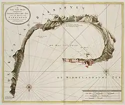 San Miguel's fort was attacked over 22 days by 24,000 infantry and 400 cavalry soldiers.[9] His few defenders rejected Hassan's offer of surrender and successfully repelled six assaults which left the moat full of dead Janissaries.[10] Among the Ottoman casualties was the governor of Constantine, whose body could be recovered by his men with the permission of Martín de Córdoba.[10] However, despite the stubbornness of the defense, the reinforcements sent from Mers el Kébir were not enough to continue fighting, and on May 8, under cover of darkness, the Spanish survivors retreated to the town.[9]