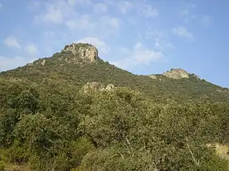 The slopes of this mountain are dotted with large rocks and granite outcrops, and covered with holm oaks, stone pines, oaks (Quercus pyrenaica), cork oaks, and Mediterranean shrubs, among which rockrose and broom stand out.[14]