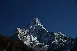 A party of leaders Mike Ward and Barry Bishop, Mike Gill and Wally Romanes made the first ascent to the 22,500 feet (6,900 m) summit of Ama Dablam on 13 March, starting on 11 March. Hillary had expected just a preliminary look at what looked to be an "impossible difficult" challenge and wondered if the Nepalese government would take issue with their lack of permission to make the climb. The difficult section, the vertical rock of the first step, had been investigated on 24 and 25 March.[12]
