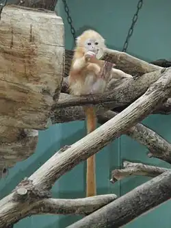 Infant silvery lutung, showing orange fur and pale skin